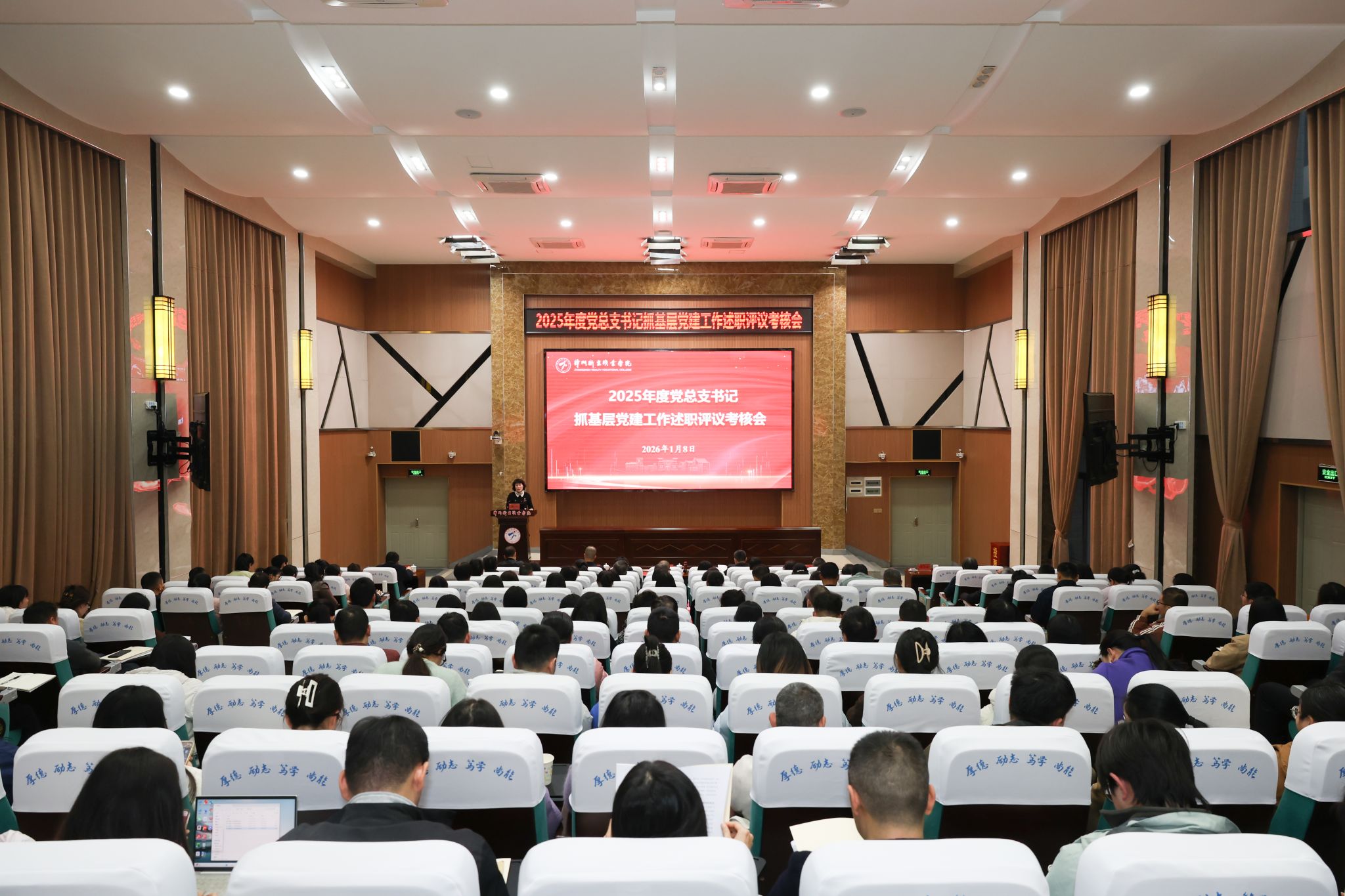 1月8日下午,我校2025年度党总支书记抓基层党建工作述职评议考核会议在学术报告厅举行。全体校领导出席会议,党委副书记叶文辉主持会议。