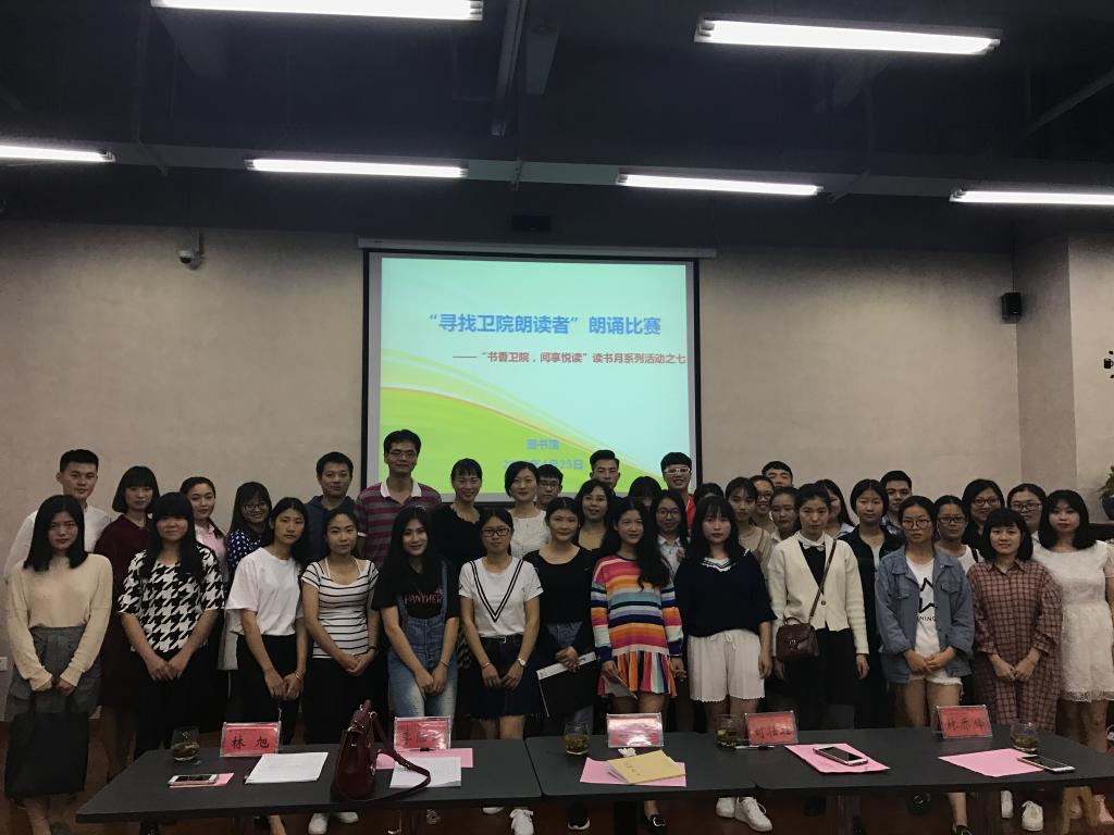 4月25日晚,图书馆在书吧举行“书香卫院,阅享悦读”读书月系列活动之“寻找卫院朗读者”朗诵比赛,邀请党工部宣传科科长李陆红、学生处学生资助管理中心主任刘壮壮、团委林旭老师担任评委,图书馆领导及馆员出席了本次比赛。