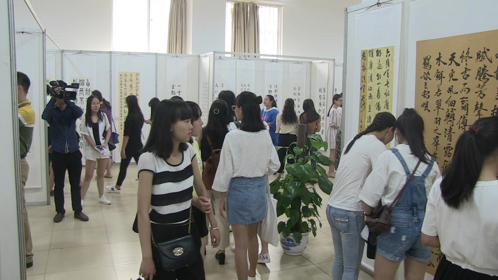 开幕式结束后,与会领导、嘉宾、教职工及学生代表等到书法展厅参观书法作品、欣赏学生古筝表演、茶艺表演等活动。