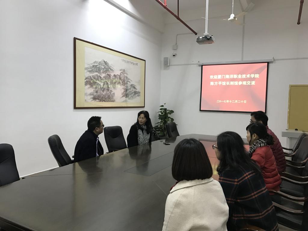 12月20日下午 ,厦门海洋职业技术学院图书馆馆长陈方平到我图书馆参观交流,我院图书馆吕立馆长热情接待。