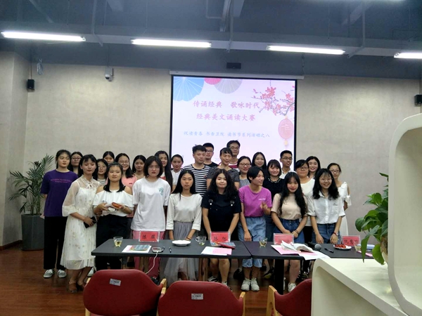 近日,图书馆在书吧举行“悦读青春 书香卫院”读书节系列活动之“传诵经典歌咏时代”经典美文诵读大赛,邀请林旭、陈薇(团委)、阮慧玲等三位老师担任评委。