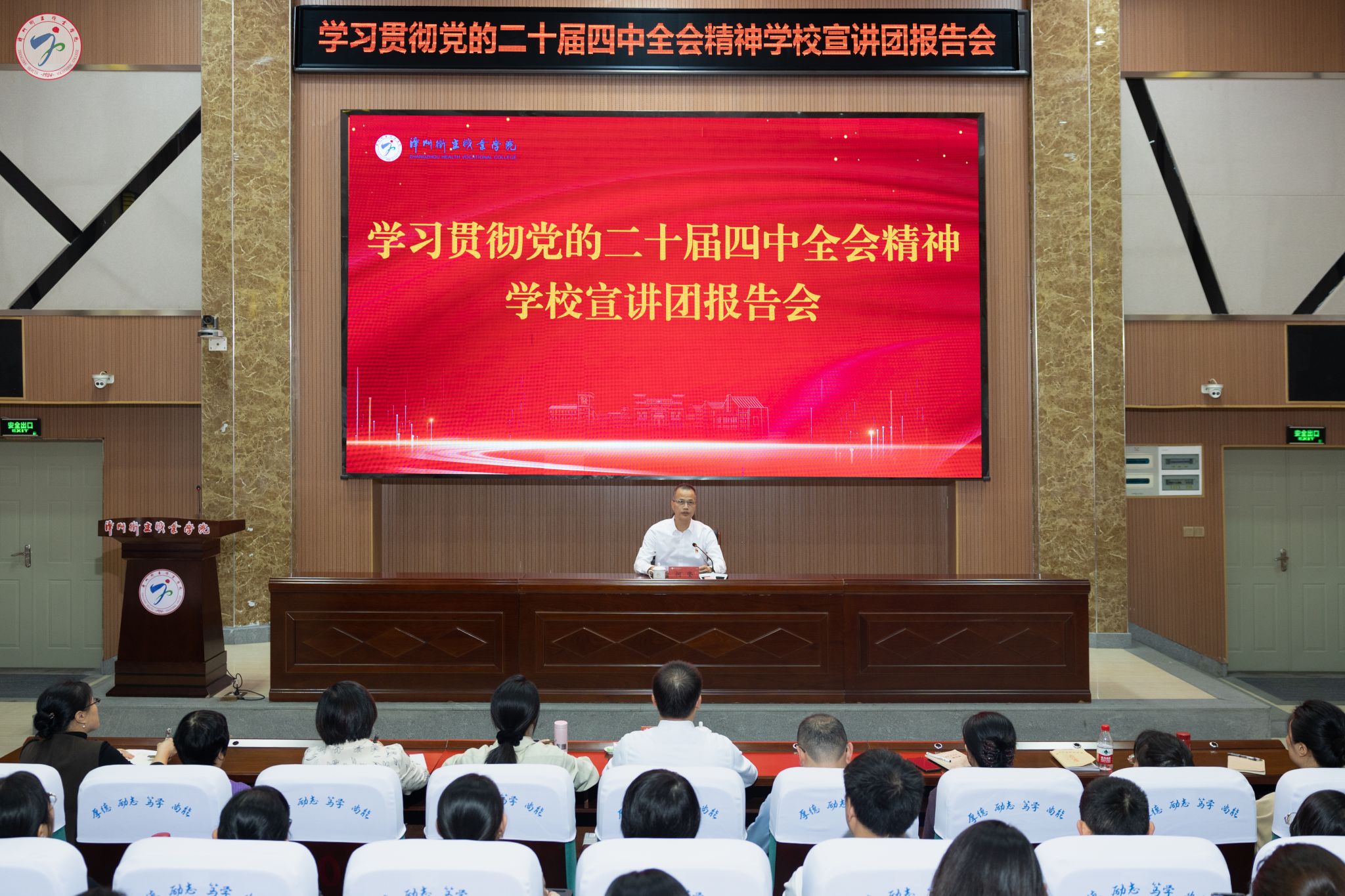 根据学校党委统一安排,12月2日,学校宣讲团成员、校长何坚作题为“深学细悟聚合力 勇毅前行开新局”党的二十届四中全会精神宣讲报告。学校二级学院党政负责人、专业带头人、骨干教师及教研室主任参加报告会。