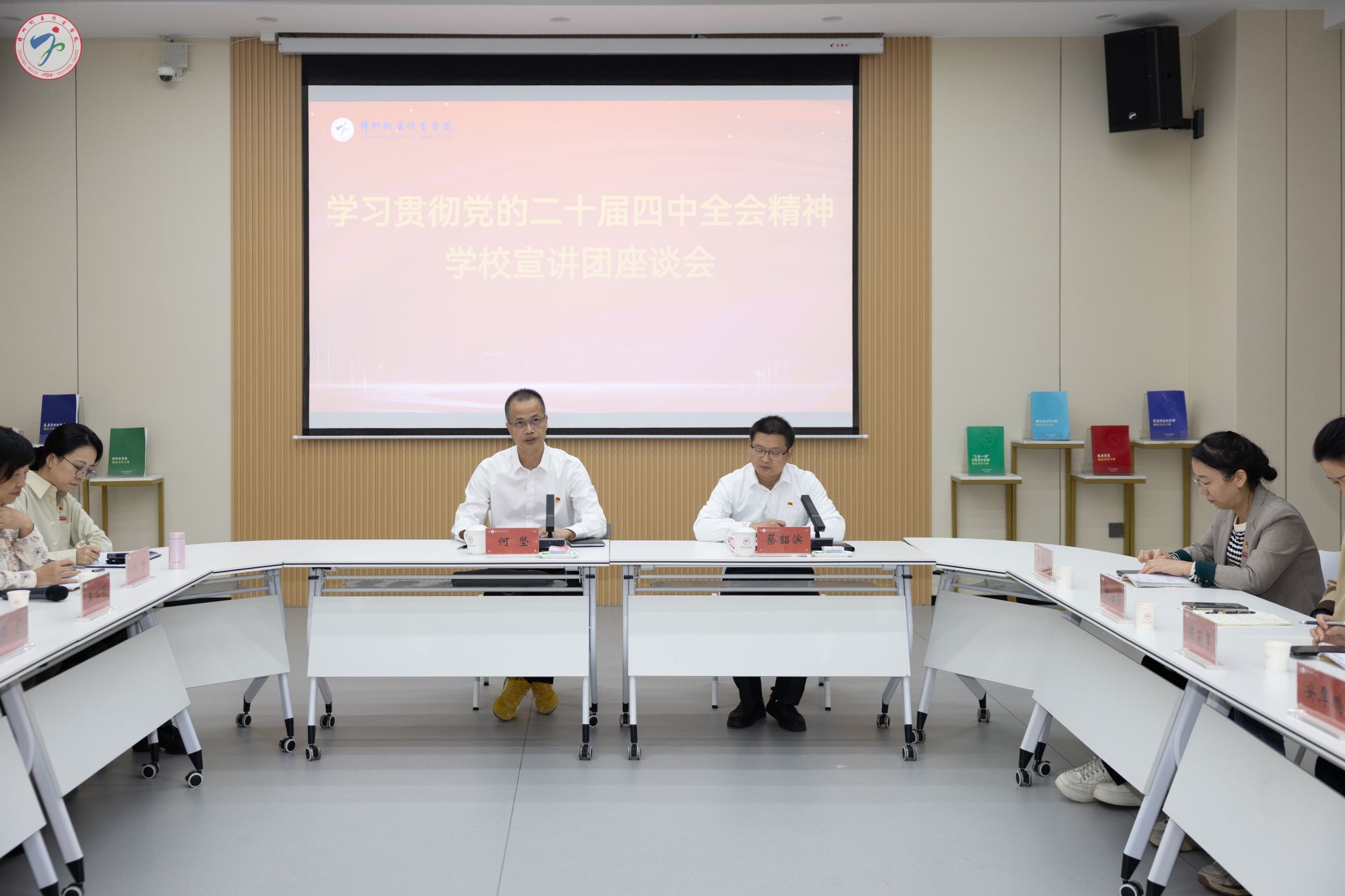 报告会后,何坚与学校二级学院党政负责人座谈,就学习贯彻党的二十届四中全会精神进行交流互动。