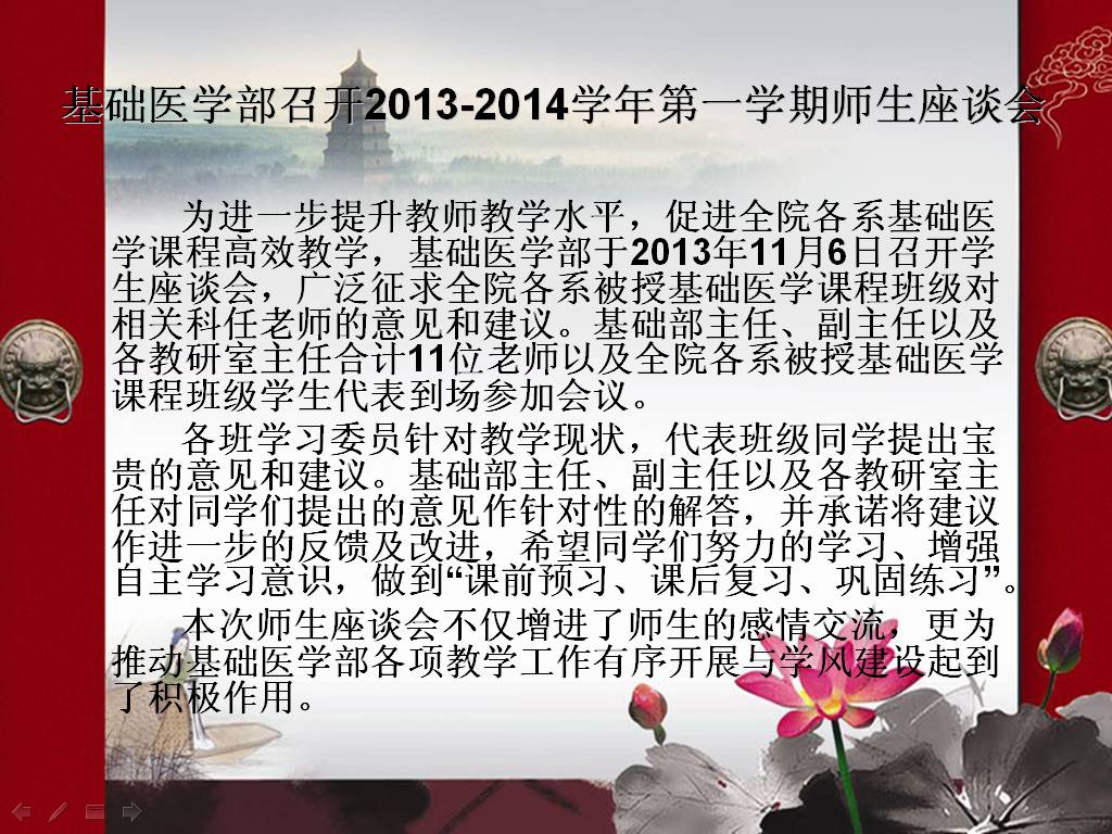 基础医学部召开2013-2014学年第一学期师生座谈会