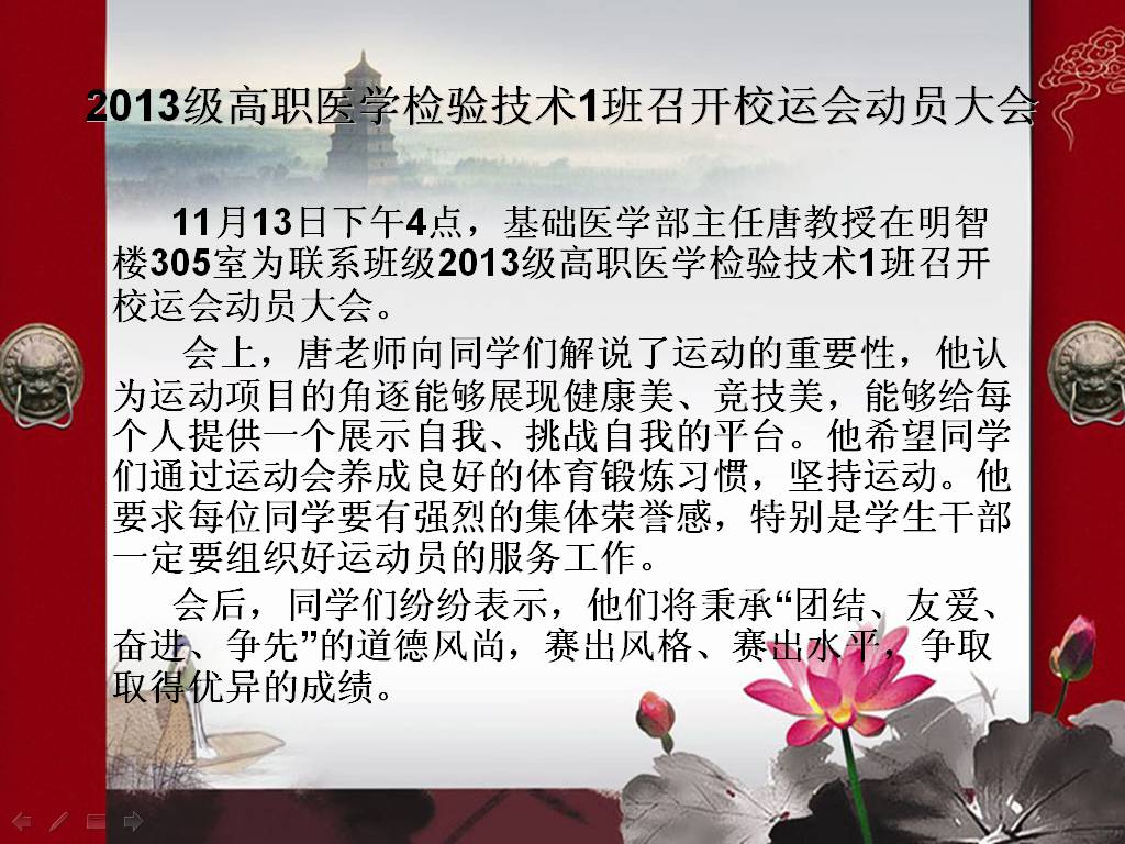 2013级高职医学检验技术1班召开校运会动员大会