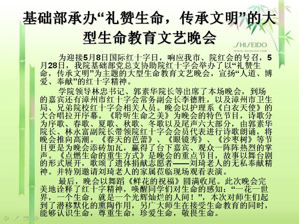 基础部承办“礼赞生命,传承文明”的大型生命教育文艺晚会