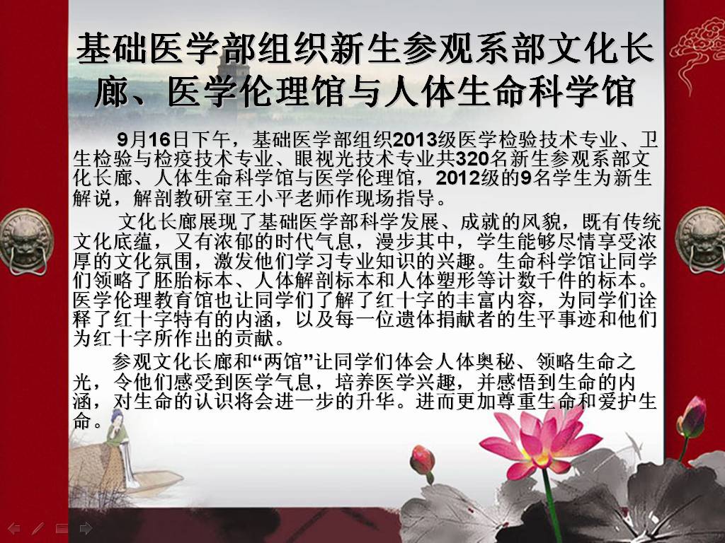 基础医学部组织新生参观系部文化长廊、医学伦理馆与人体生命科学馆