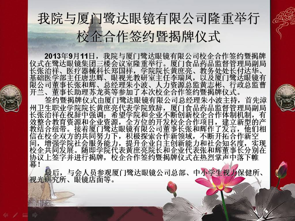 我院与厦门鹭达眼镜有限公司隆重举行校企合作签约暨揭牌仪式