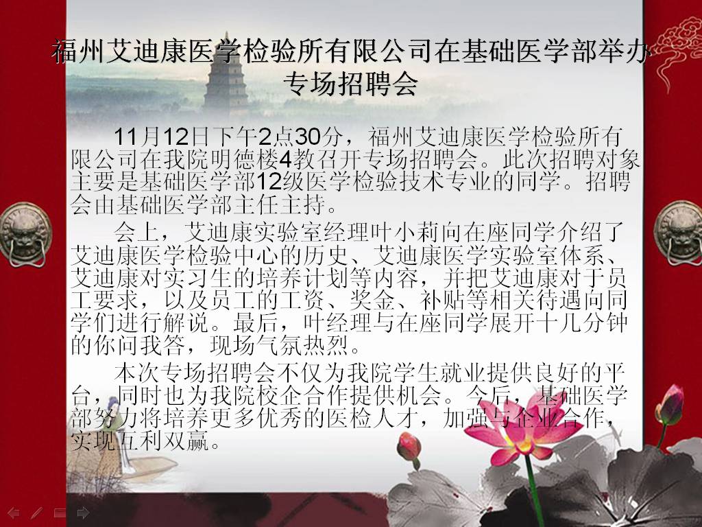 福州艾迪康医学检验所有限公司在基础医学部举办专场招聘会