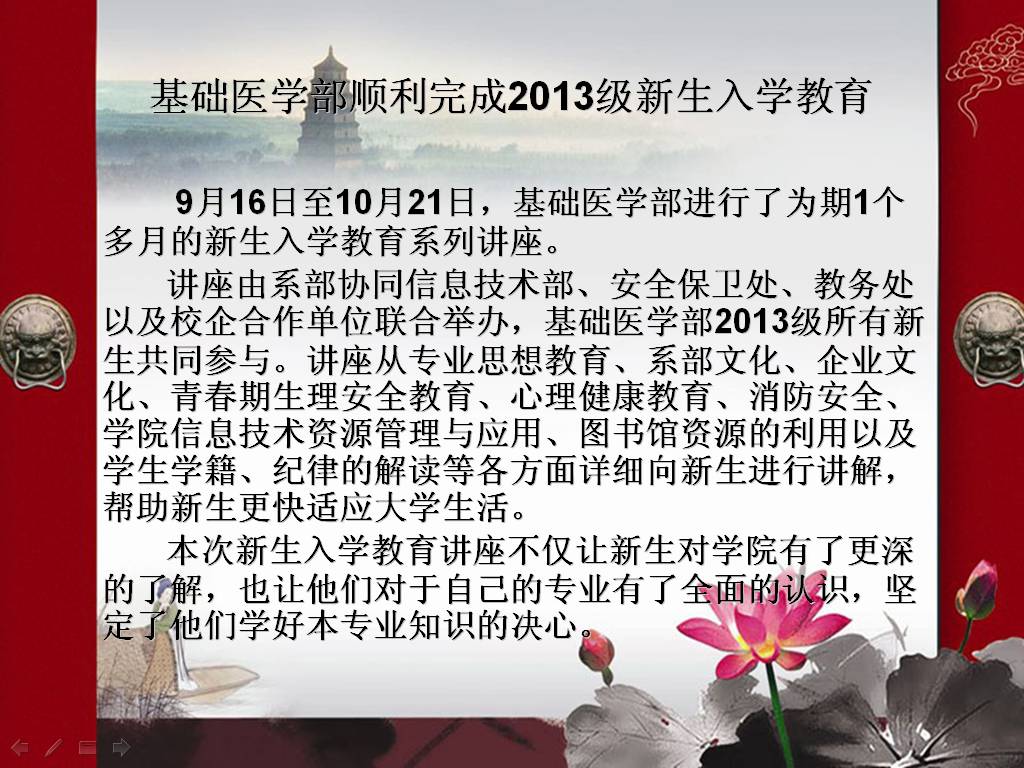 基础医学部顺利完成2013级新生入学教育