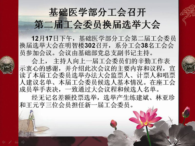 基础医学部分工会召开第二届工会委员换届选举大会