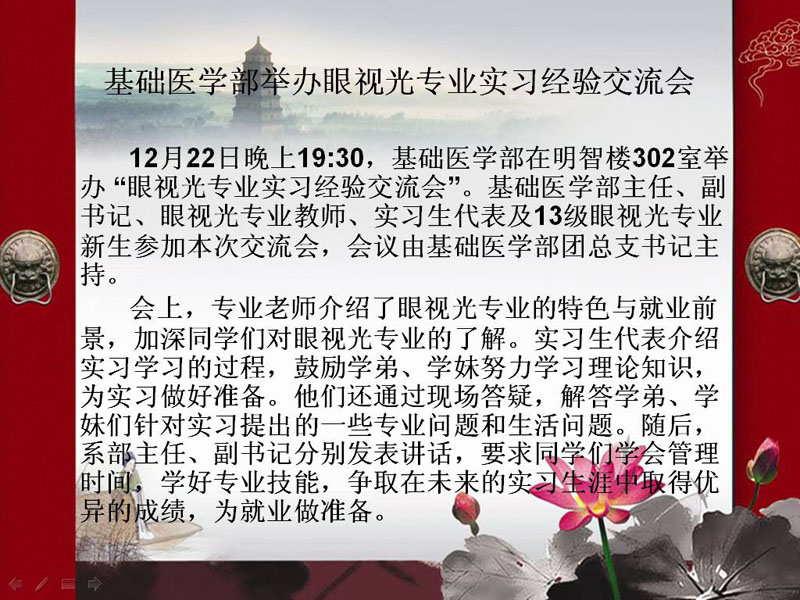 基础医学部举办眼视光专业实习经验交流会