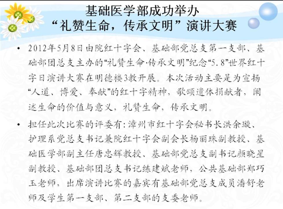基础医学部成功举办“礼赞生命,传承文明”演讲大赛