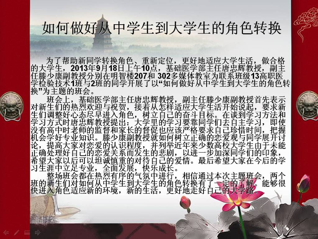基础医学部领导深入联系班级开展“如何做好从中学生到大学生的角色转换”主题班会