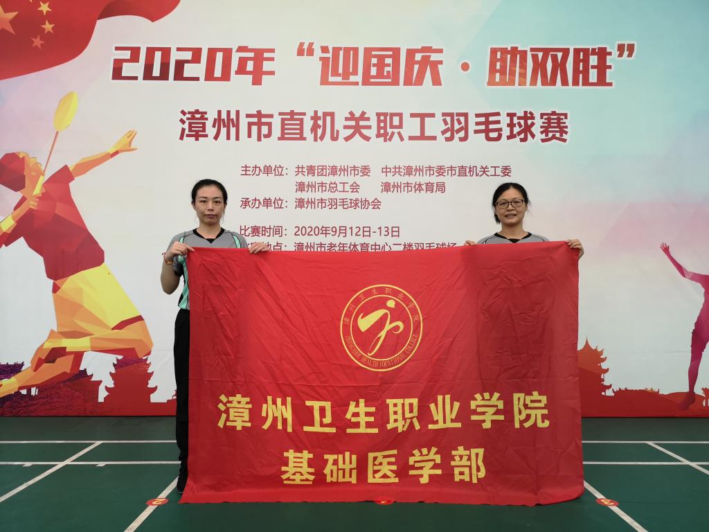 9月12至13日,2020 年“迎国庆•助双胜”漳州市直机关羽毛球赛在漳州市老年体育中心羽毛球场举办。该赛事由漳州团市委、漳州市委市直机关工委、漳州市总工会、漳州市体育局联合举办,来自市直单位的 30 支代表队112名运动员参加。漳州卫生职业学院基础医学部曹林枝、陈宇斌老师全程参与此次比赛的裁判工作。此类比赛也激发了广大党员干部职工运动锻炼的激情。我系身在卫生健康系统,也积极的为全民运动,全民健康贡献一份绵薄之力。