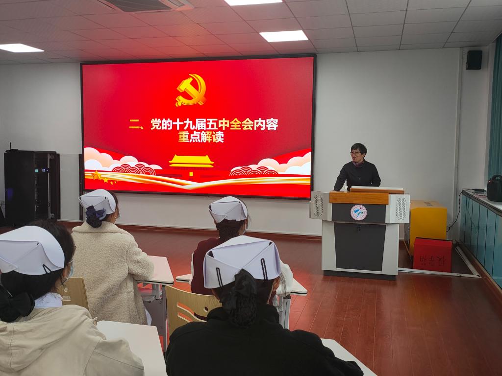 2020年12月21日医学技术系教师支部陈雅静书记于明智楼412为2017级五年专护理的学生解读中国共产党第十九届中央委员会第五次全体会议公报。