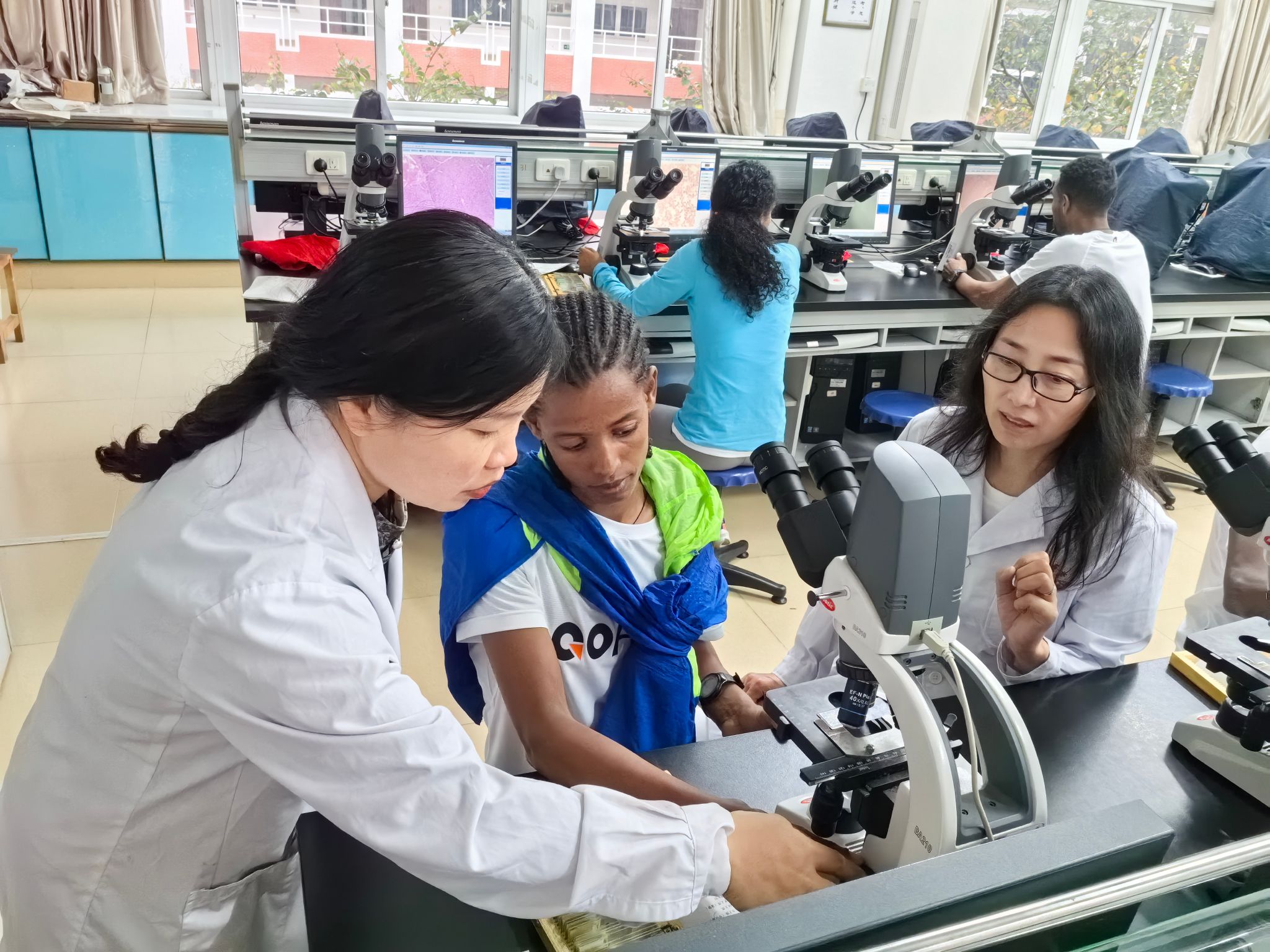 2024年4月18日下午,基础医学院配合学校海丝学院第三届“中文+”卫生健康研习活动,在我院形态学实验室和微生物实验室开展以“细菌的分布”为主题的系列体验活动。在第一站形态学实验室,四名埃塞俄比亚运动员在专业教师的指导下学习使用BA210Digital型号的MOTIC显微镜,经过指导他们很快能独立观察胃、肠、肝、血管等正常组织的结构。第二站在微生物实验室,几位运动员听取细菌培养的方法和步骤的讲解。在专业老师的帮助下,他们学习使用平板划线分离培养法培养了来源于桌面、地板、手机、水源四个不同位置的细菌。在授课中,老师还与运动员们分享了“海纳百川,有容乃大”的思想,传递中国传统文化。随着活动的圆满结束,四名埃塞俄比亚运动员带着满满的收获和深刻的印象离开了基础医学院。通过此次参与学校海丝学院的活动,促进我院积极探索课程对外交流新模式,开辟对外交流新路径。基础医学院也将继续为学校未来的国际化发展贡献一份力量!