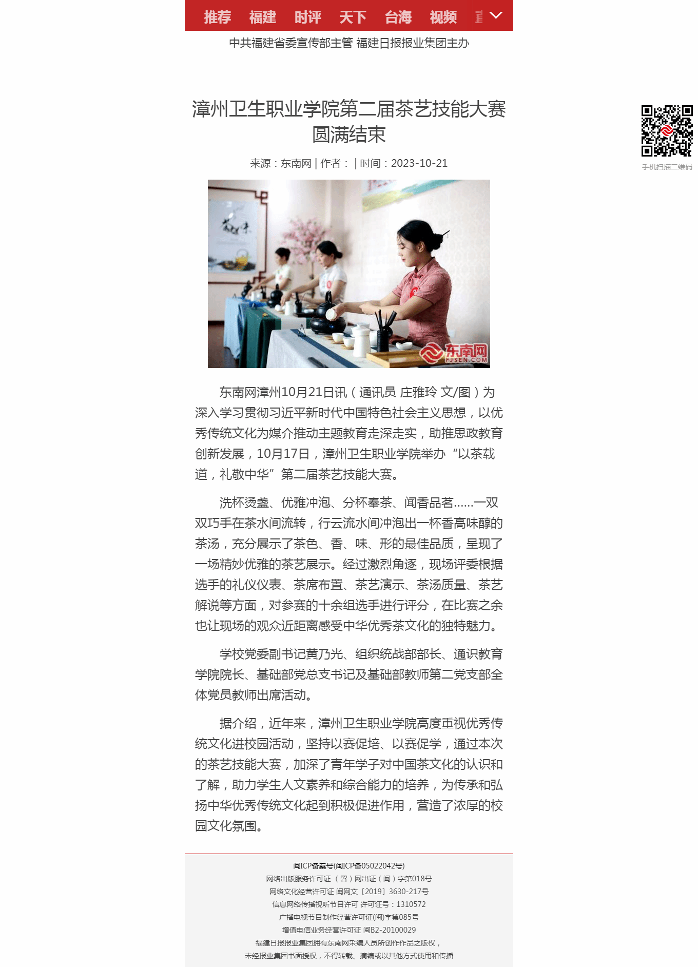 东南网:漳州卫生职业学院第二届茶艺技能大赛圆满结束