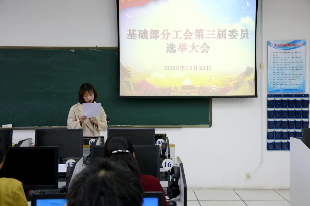 12月22日,基础部在明城楼201教室召开漳州卫生职业学院工会委员会基础部分工会第三届委员会换届选举大会。基础部分工会会员参加,会议由总支组委郭鸣鹃主持。