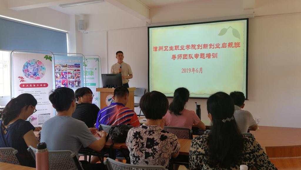 6月28日,学院创新创业启航班项目指导教师专题培训在学生素质发展中心二楼路演厅开展,“互联网+”创新创业大赛国赛铜奖及省赛银奖指导老师、省创新创业投资与孵化器服务联盟创业导师张银福应邀担任主讲,经学院第五届“互联网+”创新创业大赛遴选的创新创业项目指导老师共20余位参加。
