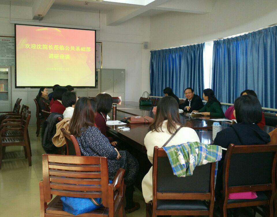 为密切联系师生,畅通上下联系渠道,深入了解民情、民意,广泛听取基层教职员工对学院事业发展各方面的意见和建议, 12月11日下午,沈国星院长深入公共基础部开展无主题调研座谈,会议由系部负责人洪玉兰主持,系部全体教职工参加。