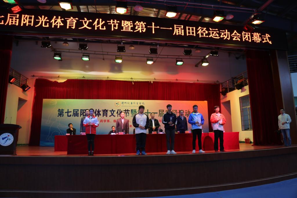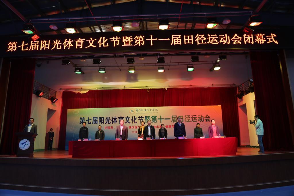11月25日下午,细雨霏霏,寒风绵绵,漳州卫生职业学院风雨操场上却是慷慨激昂、激情飞扬。我院第七届阳光体育文化节暨第十一届田径运动会在学院田径运动场顺利闭幕。学院领导沈国星、郑长江、房立平、陈义三、蓝淑华、相关部门领导出席闭幕式并在主席台就座。房立平副院长主持闭幕式。