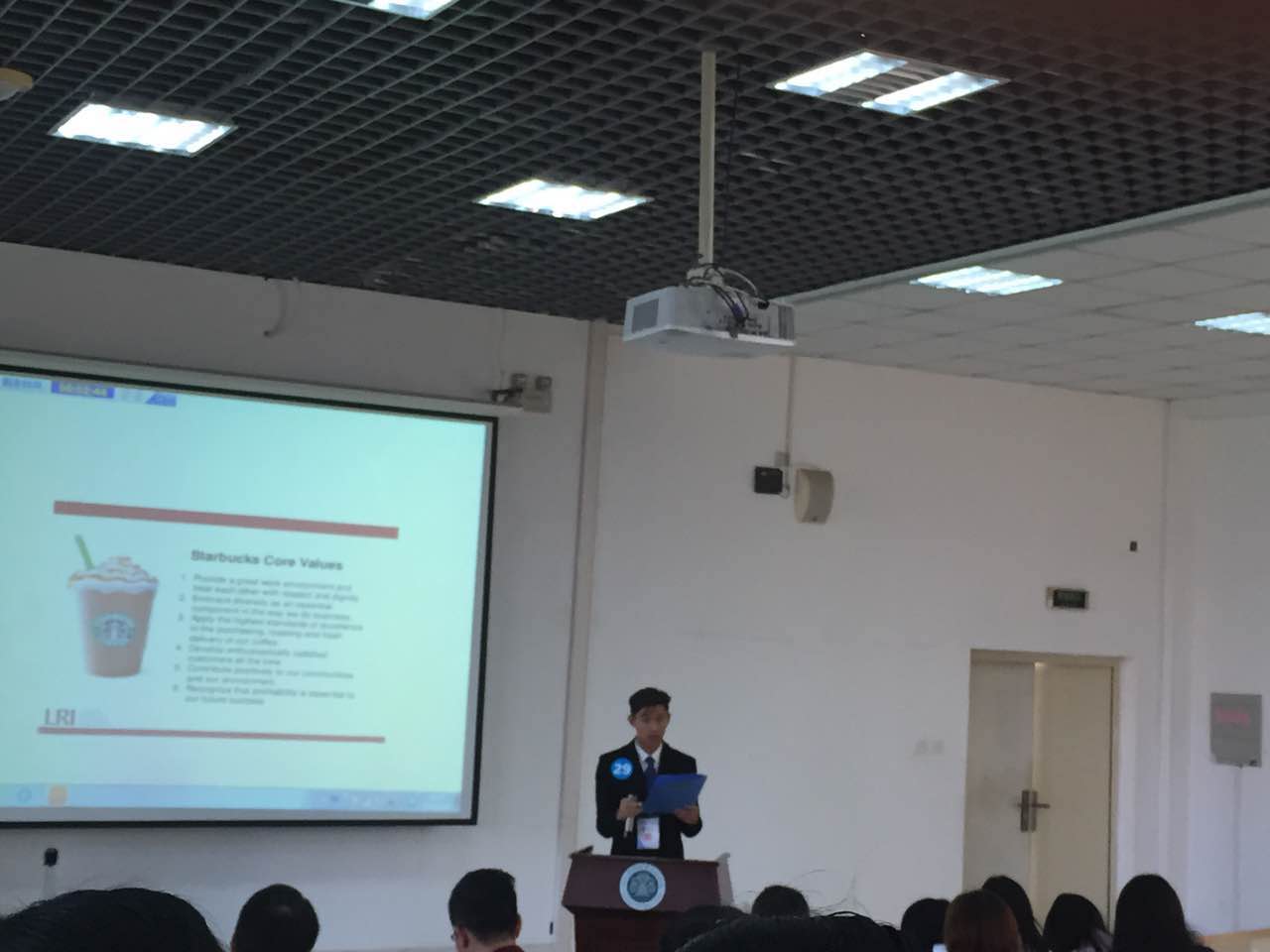 本次比赛分为“职场描述”、“情景交流”、“PK辩论”三个环节。所有环节均采用选手现场抽题,现场即兴表达的比赛方式。李睿同学在紧张激烈的角逐中发挥稳定,以其沉稳大方的风格、标准的语音、流畅的表达,获得了评委和现场观众的认可和一致好评。值得一提的是,在“情景交流”的比赛环节,李睿同学表现出优秀的语言能力和强大的心理素质,准确及时地回答出评委的提问,受到了评委老师的肯定。