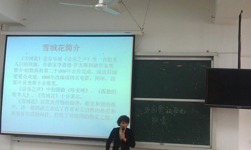 3月25日下午,校园文化大讲堂系列讲座之外国影视音乐欣赏在明德楼二教举行,殷秀芳副教授任主讲。