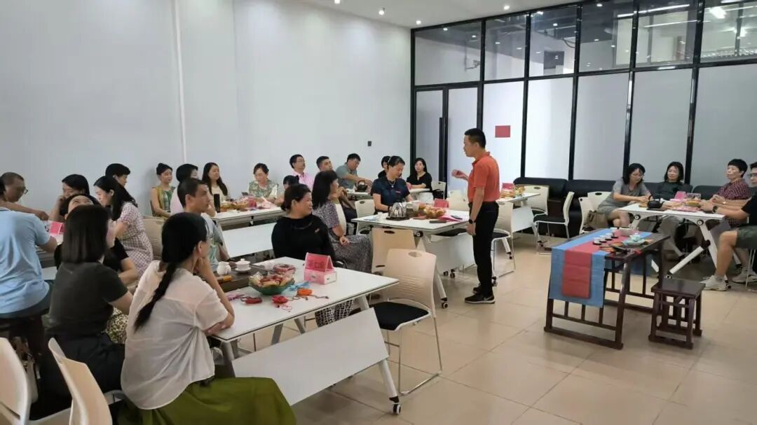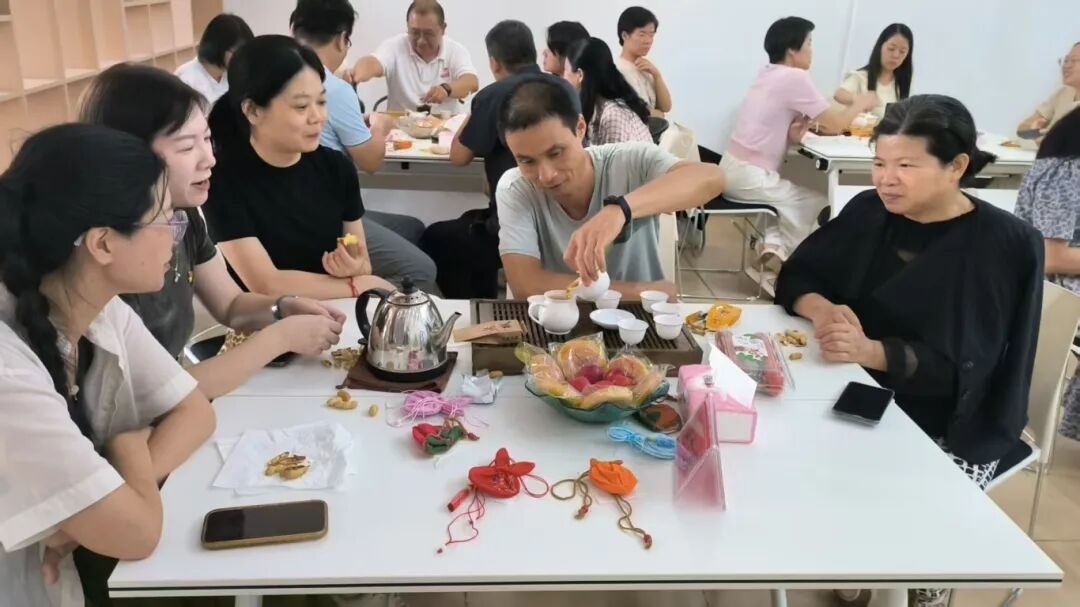 活动伊始,叶副书记代表学校党委、领导向学院全体教职工送节日祝福,向深耕通识教育一线的教师表诚挚感谢,茶话会兼具节日团聚与文化交流意义,愿老师们借茶艺感受文化、放松身心、增进情谊。活动开场,老师们一起高歌《今天是你的生日,中国》,歌声伴茶香暖动氛围。随后通识教育学院院长吕立致辞,向在场教师送上节日祝福。学院茶点代表美好祝福,柿子寓意“事事如意”,花生代表“生生不息”,愿通识课堂永葆生机,滋养届届学生。活动还邀请了庄雅玲老师进行茶文化分享,讲解茶具使用、奉茶与品茶、谢茶礼仪及投茶量、水温控制等技巧。之后,老师们制作了艾草香囊以作纪念,并且品尝月饼、茶点与水果。老师们表示:本次茶话会有效增进了彼此交流、学院赠予老师的主人杯寓意很好,每次举杯都能忆起我们通识人并肩育人的点滴温暖。