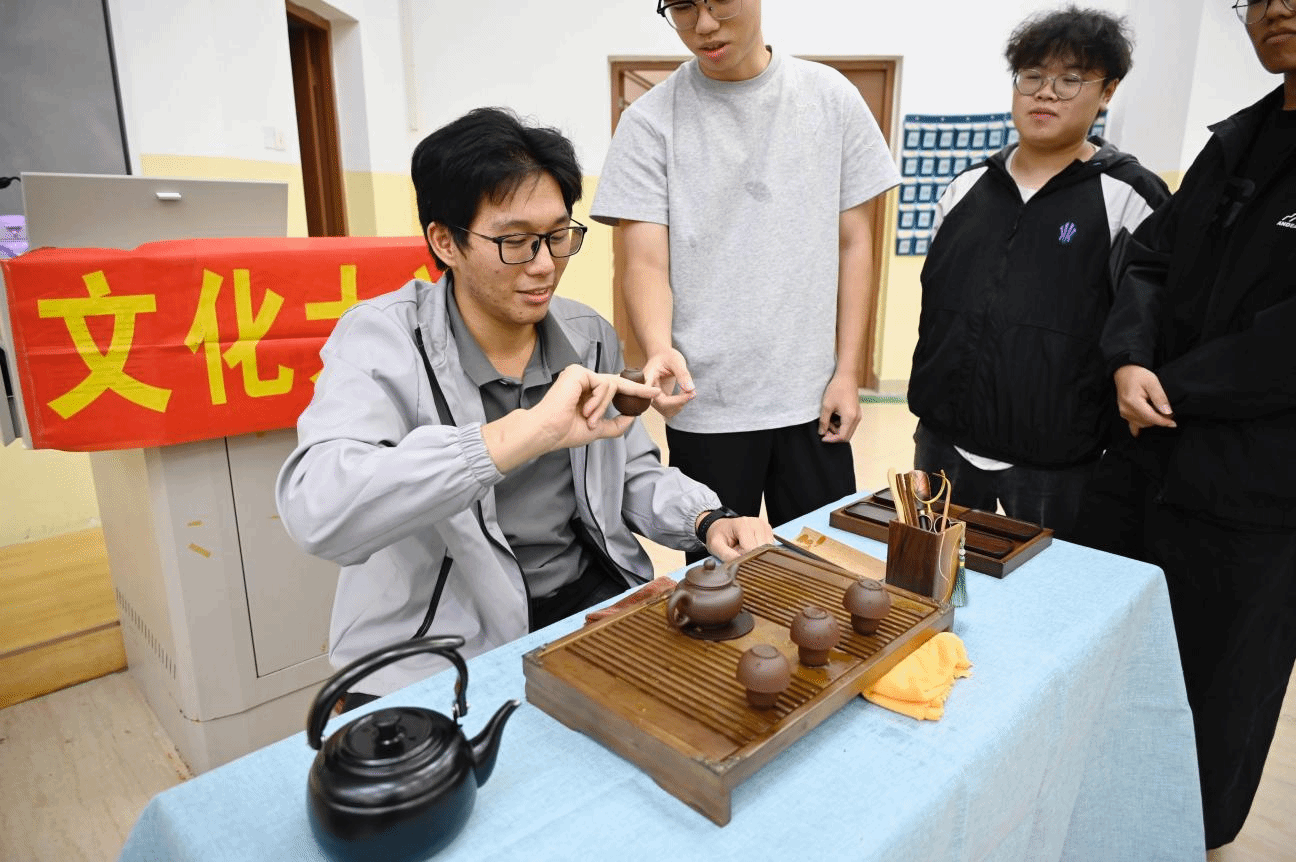 活动中,庄老师以“一片树叶的传奇”为引,用鲜活故事梳理茶的发展脉络:从神农氏发现茶的药用价值,到陆羽《茶经》奠定茶道基础,再到宋代点茶鼎盛、茶马古道文明交融,让学生沉浸式感受茶文化底蕴。随后,她介绍了六大茶类独特工艺,并融入中医养生理念,展现传统智慧魅力。互动环节中,庄老师示范宋代点茶技法,以“注水张弛有度如做人做事”阐释茶道哲学,学生们踊跃参与“凤凰三点头”敬茶礼仪等实践,真切体会“以茶修身、以茶养德”的内涵。