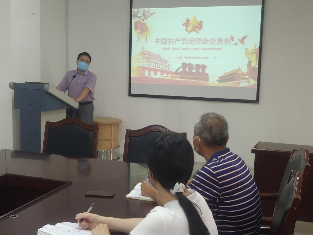 9月14日下午,学院纪委书记宋志海在行政楼五楼会议室召开纪检干部工作会议,再次组织大家学习《中国共产党纪律处分条例》和《中国共产党廉洁自律准则》。学院纪委委员、各党总支纪检委员和纪检监察干部参加会议。