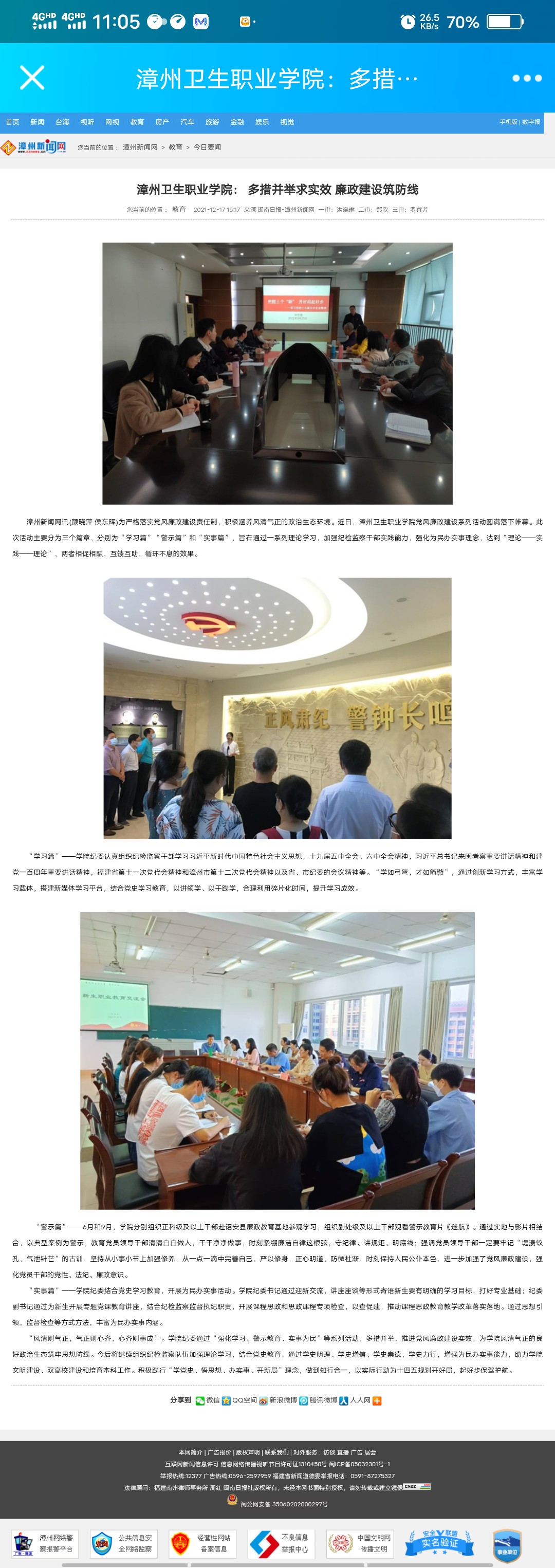 漳州新闻网:漳州卫生职业学院:多措并举求实效 廉政建设筑防线
