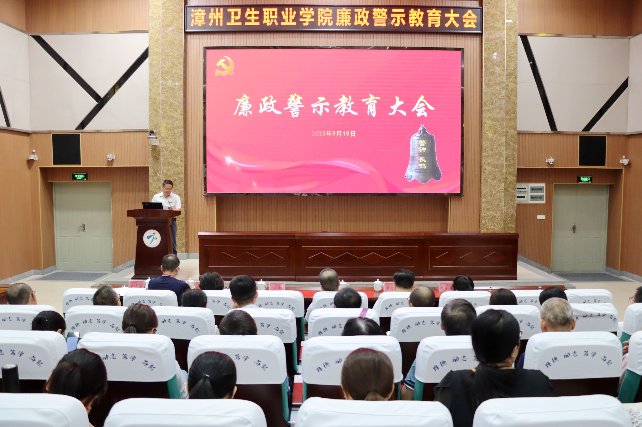 为深入学习贯彻习近平总书记关于全面从严治党和建设教育强国的重要论述,传达全市教育系统警示教育大会精神,9月19日下午,我校在学术报告厅召开廉政警示教育大会。学校党委书记陈超作强调讲话,会议由纪委书记宋志海主持。