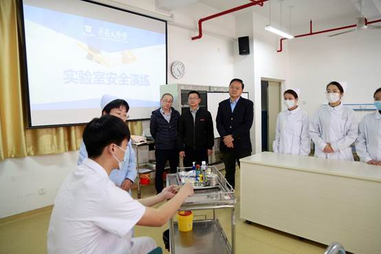此次实验室安全演练模拟了师生紧急处理实验实训过程中出现的突发情况,如针刺伤、烧伤、着火等。参加演练的师生模拟了事故应急处置及消防演练等过程。通过演练,培训师生在面对实验实训安全事故时如何有效组织、快速反应、临危不乱地开展紧急自救、互救。