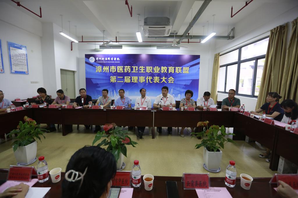 6月26日,2021年漳州市医药卫生职业教育联盟第二届理事代表大会在漳州卫生职业学院胜利召开。漳州卫生职业学院党委书记林忠,漳州市医药卫生职业教育联盟理事长、漳州卫生职业学院院长沈国星,漳州市委教育工委副书记、市教育局副局长洪维椿,漳州市卫生健康委员会四级调研员叶阿良,漳州卫生职业学院副院长沈小美、陈义三出席会议,涵盖院校、医院、企业的36家联盟理事代表46人出席大会。会议由陈义三主持。