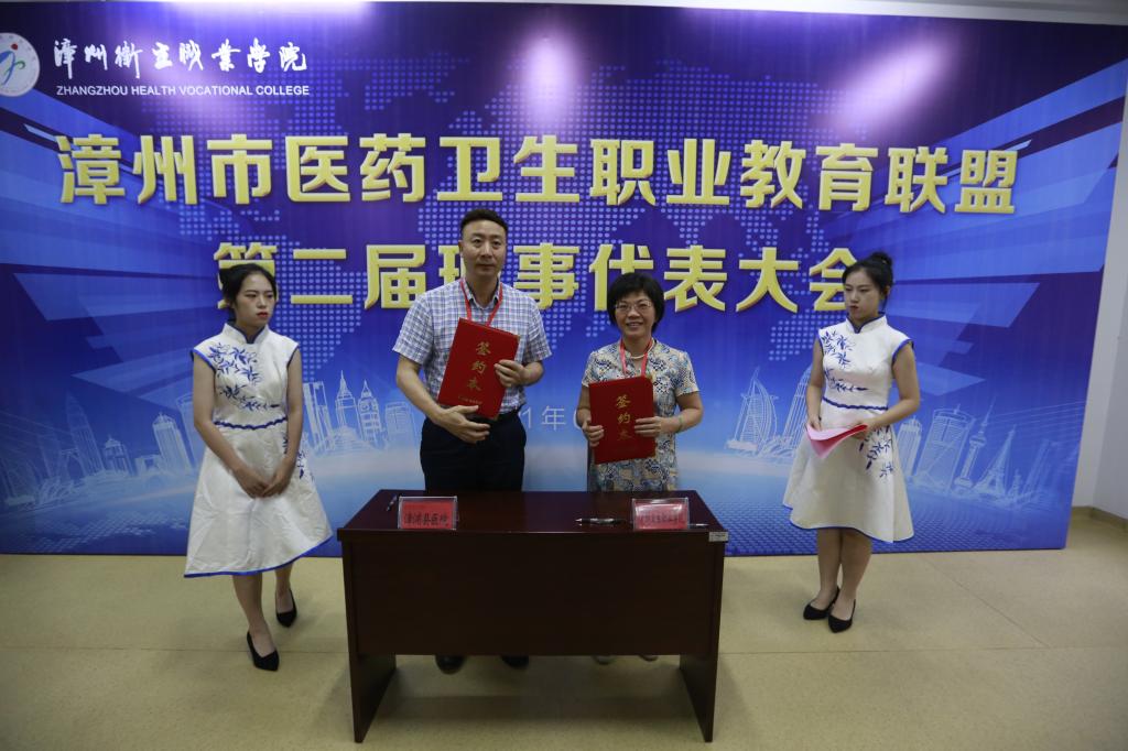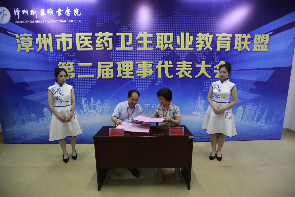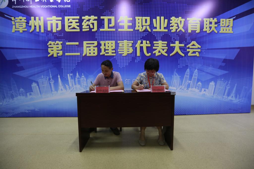 大会审议通过了《漳州市医药卫生职业教育联盟第二届理事单位和理事会成员名单》、《漳州市医药卫生职业教育联盟章程(修订稿)》、《漳州医药文献资源联盟理事单位和理事会成员名单》、《漳州医药文献资源联盟章程》。会上还正式成立了漳州医药文献资源联盟,沈小美代表学院与漳州市人民医院、漳州市龙海区第一医院、漳浦县医院、漳浦县中医院、诏安县医院5家联盟理事单位签订合作协议。
