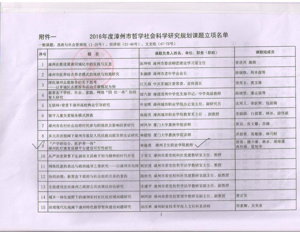 关于2016年度漳州市哲学社会科学研究规划课题立项名单,