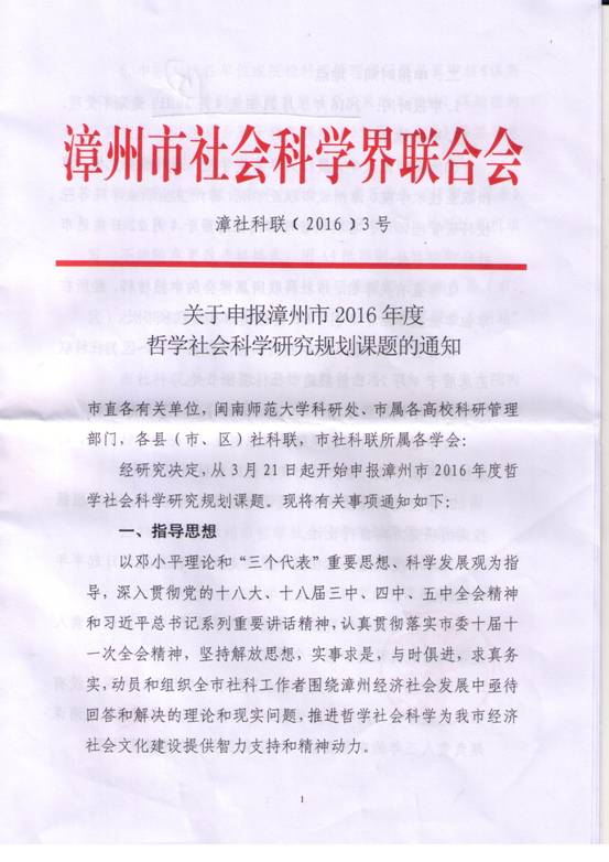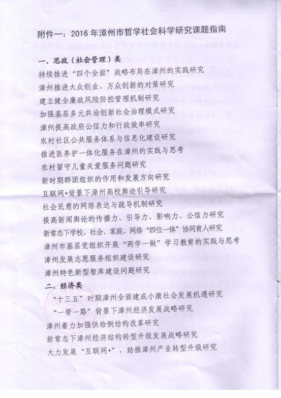 1.2016年度漳州市哲学社会科学研究规划课题指南