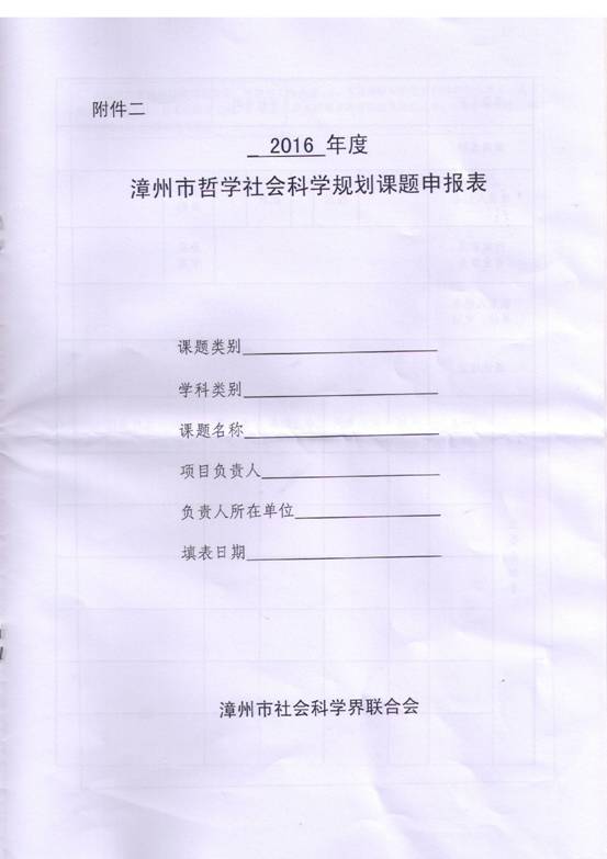 2.2016年度漳州市哲学社会科学规划课题申请表