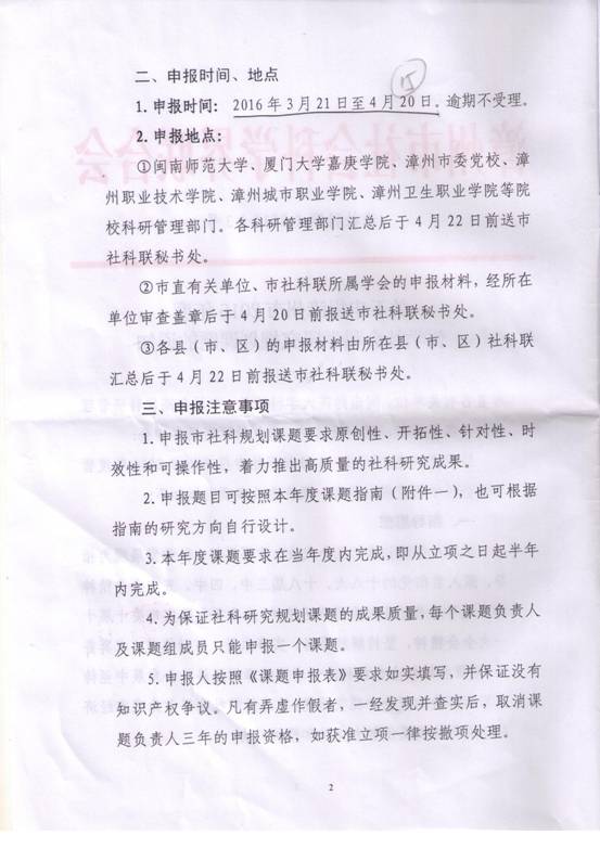 关于申报漳州市2016年度哲学社会科学研究规划课题的通知