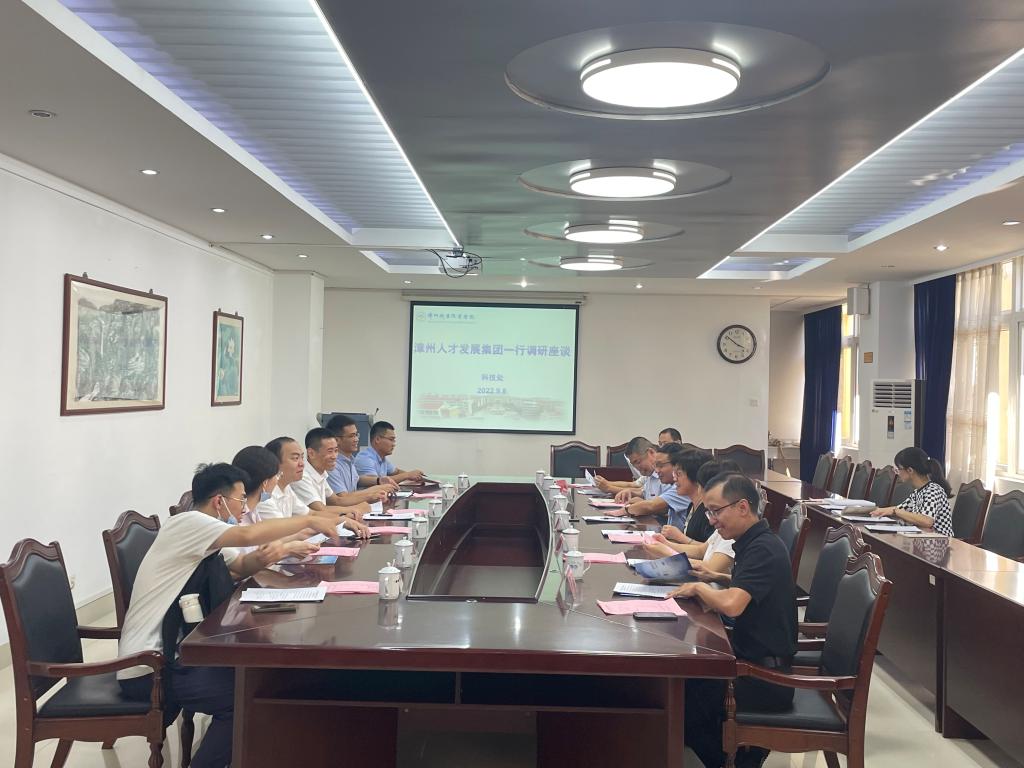 9月8日下午,漳州人才发展集团副总经理郑庆祥等一行6人到我院参观调研,双方就相关合作进行交流座谈。学院院长沈国星、副院长沈小美以及相关部门负责人出席座谈会,会议由科技处处长张春斌主持。