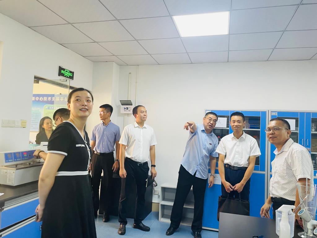 郑庆祥等一行还参观了学院医学检测中心、药学科研中心以及省级中医药文化宣传教育基地,张春斌陪同讲解了学院科技成果及科研平台建设情况。
