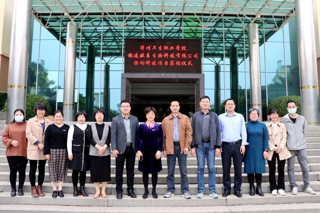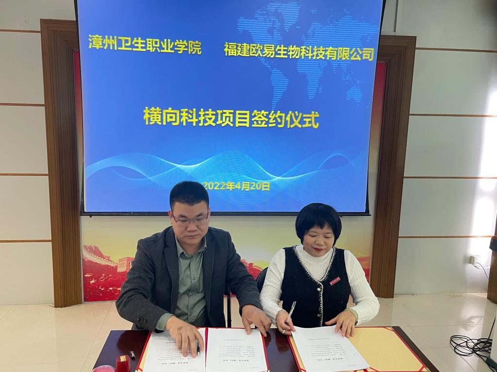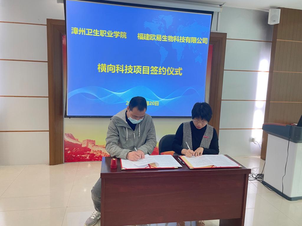 4月20日下午,学院与福建欧易生物科技有限公司横向科技项目签约仪式在行政楼四楼会议举行。学院副院长沈小美、芗城区工业和信息化局四级主任科员苏亚玲、成果管理股负责人韩添福、福建欧易生物科技有限公司董事长欧阳长福、经理王庆明、以及药学系、基础医学部等相关负责人出席签约仪式。会议由科技处许淑茹主持。