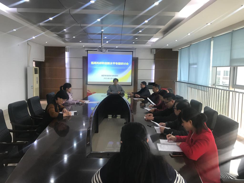 1月26日上午,提高学院科研和创新水平专题研讨会在行政楼4楼会议室召开。会议由副院长沈小美主持,各系部主任、副主任及科研科负责人参加会议。