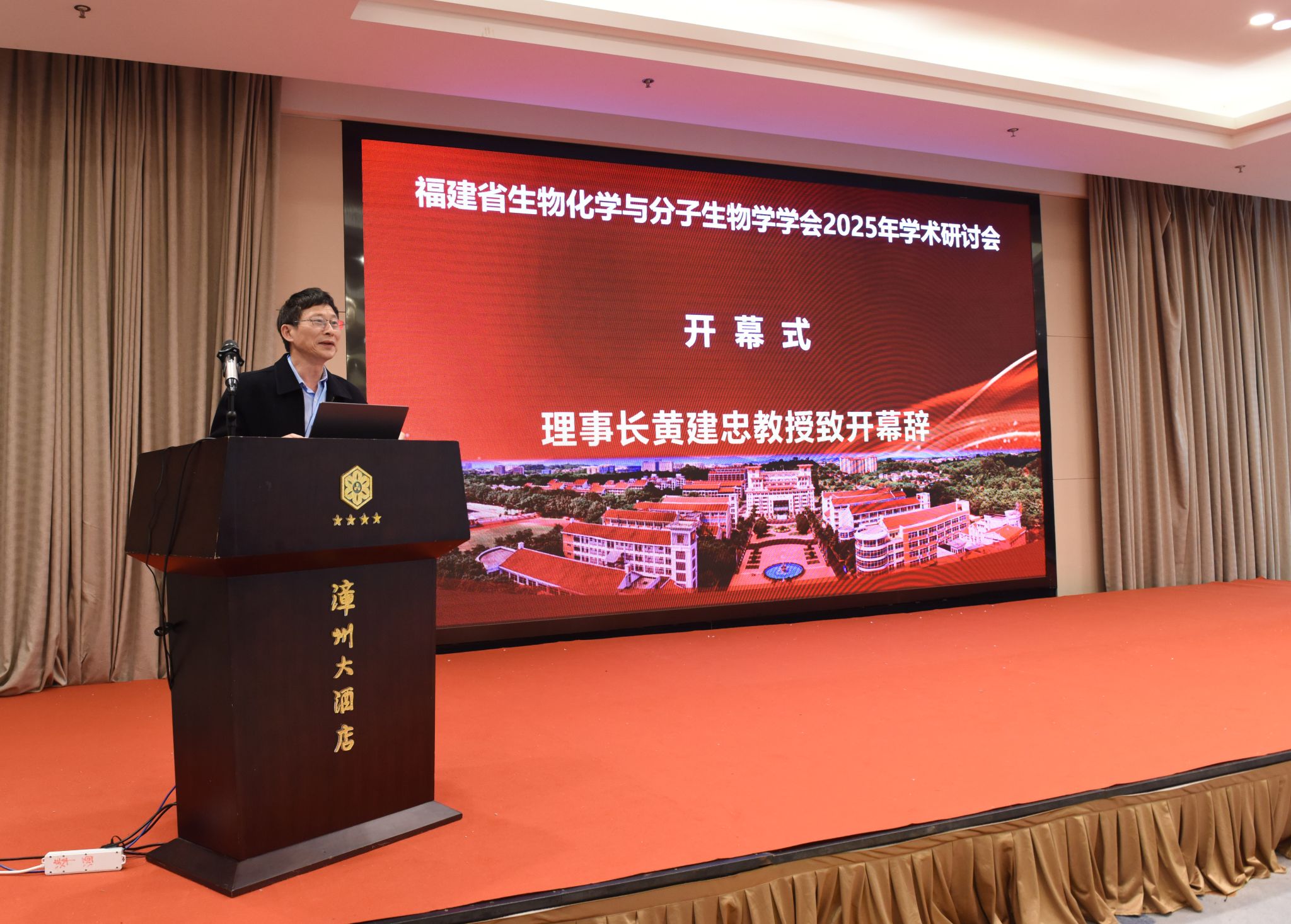 黄建忠教授代表学会对我校的精心筹备、周密安排表示感谢,强调了生物化学与分子生物学在是食品科学、生物医药创新等领域的核心作用,希望通过本次会议搭建高效交流平台,促进学科整体发展。