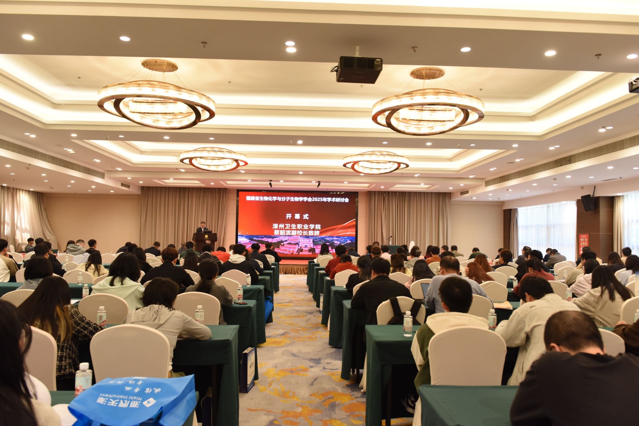 12月6日,福建省生物化学与分子生物学学会2025年学术年会在漳州举行。本次会议由福建省生物化学与分子生物学学会主办,漳州卫生职业学院承办。漳州卫生职业学院副校长蔡韶滨、福建省生物化学与分子生物学学会理事长黄建忠教授、前理事长林跃鑫教授等领导与嘉宾出席开幕式。本次年会汇聚澳门大学、厦门大学、福州大学、福建医科大学、天津科技大学、中国农业科学研究院等省内外高校、科研院所及医疗机构的200余名专家学者、青年科研骨干与学生代表,共同探讨学科前沿动态与实践应用路径。大会开幕式由学会秘书长夏晓峰主持。