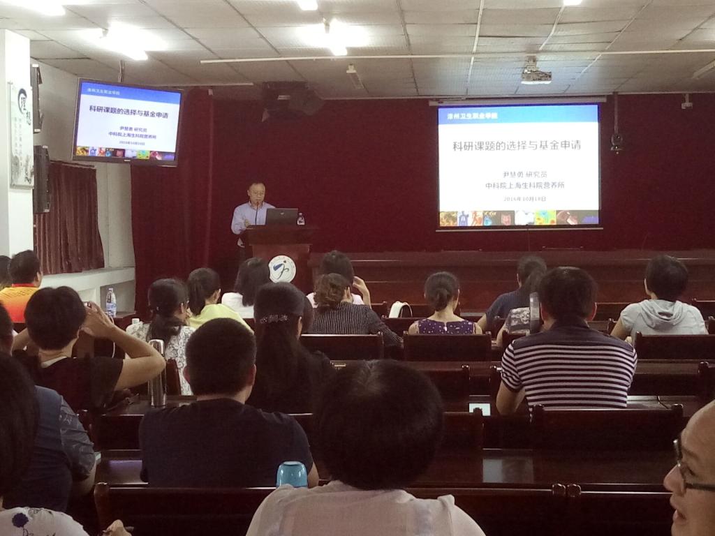 10月17日下午,我院邀请中国科学院上海生命科学研究院研究员尹慧勇博士在明诚楼演播厅举办《科研课题的选择与基金申请》专题讲座,本次讲座由沈国星院长主持。