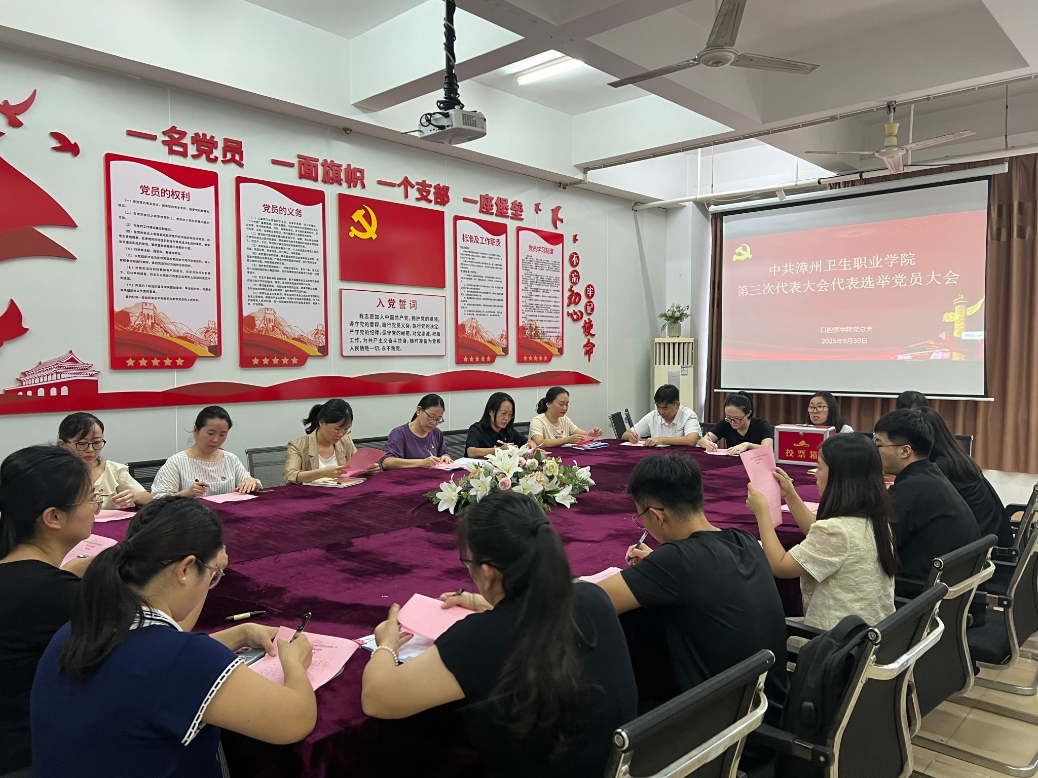 9月30日下午,学院党总支在致馨楼209会议室召开党员大会,选举产生出席中共漳州卫生职业学院第三次代表大会的代表。会议由学院党总支副书记主持,全体党员参加。