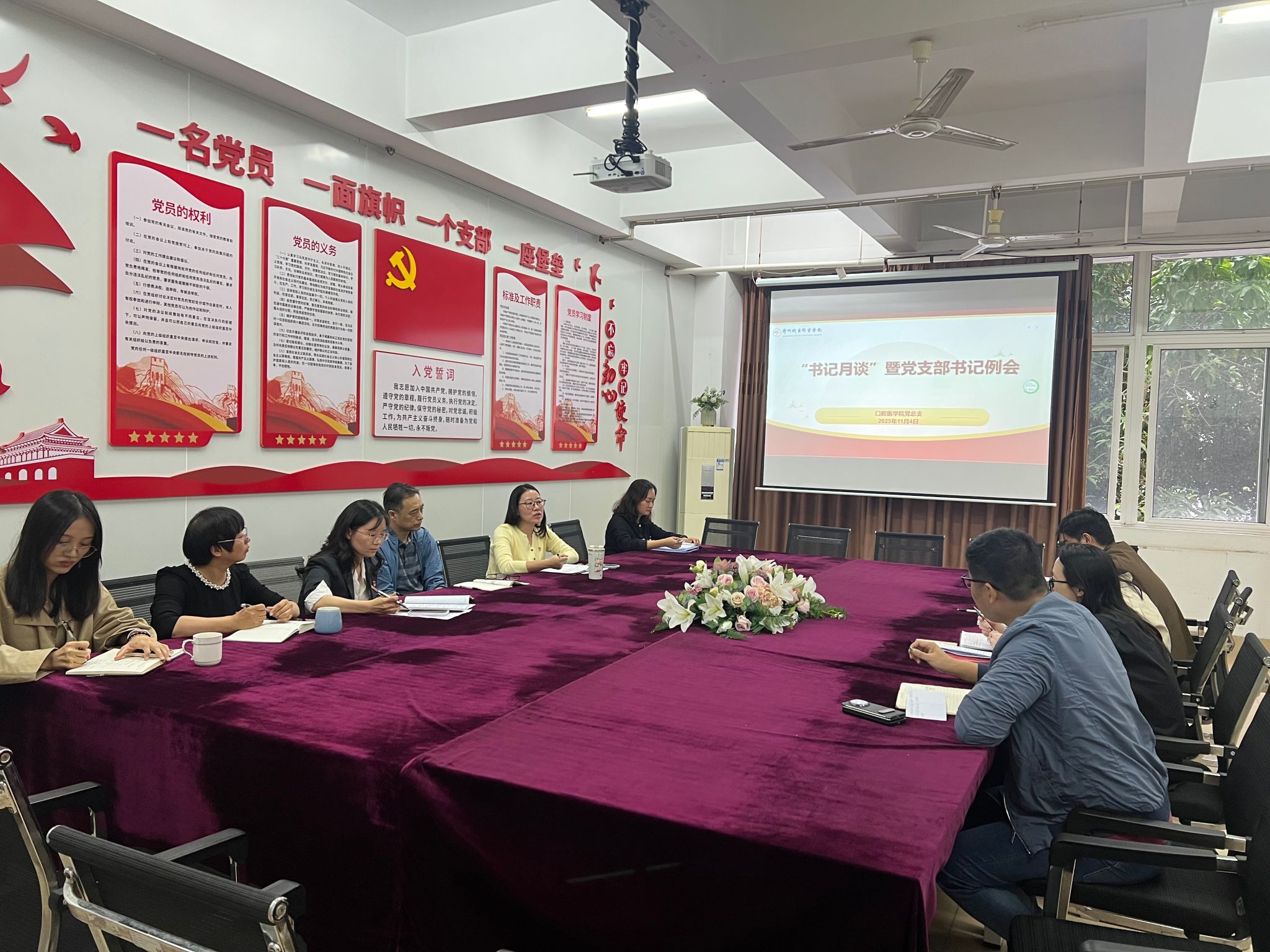 11月4日,学院党总支在致馨楼209会议室召开“书记月谈”暨党支部书记例会,全体总支委员、支部委员参加。会议由党总支副书记主持。