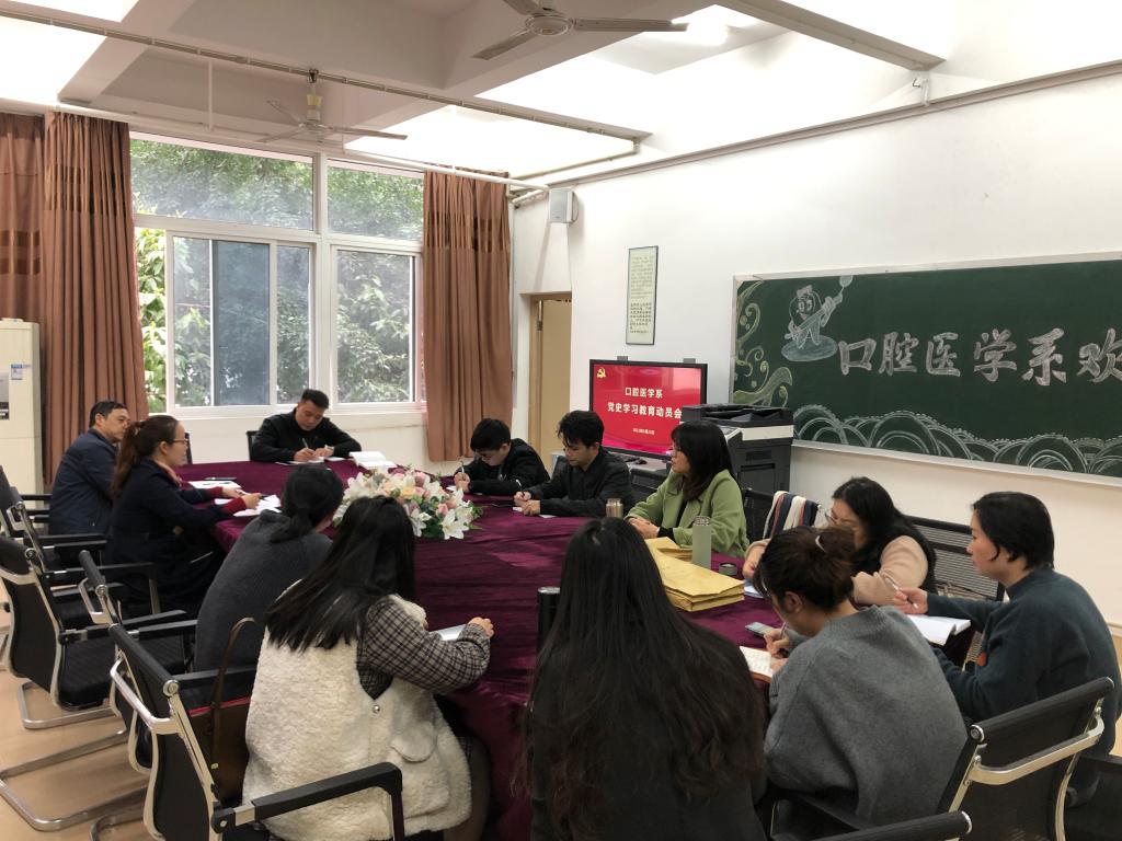 3月23日,口腔医学系召开党史学习教育动员及党史学习专题教育会,会议由党总支书记陈莉苹主持,全体党员、教职工参加。